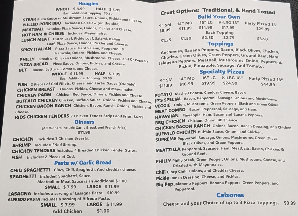 Jacobs Pizza offers a straightforward and inviting menu that focuses on comforting, familiar favorites enjoyed in a casual setting. Whether you’re stopping in for a quick bite or ordering in for a relaxed family meal, the selection balances hearty pizzas, satisfying hoagies, and flavorful sides with approachable everyday flavors.