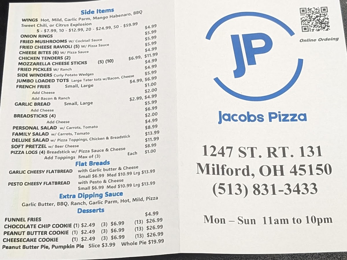 Overall, Jacobs Pizza’s food pairs smoothly with everyday dining occasions, offering a balance of taste and portion size that suits gatherings of all sizes.